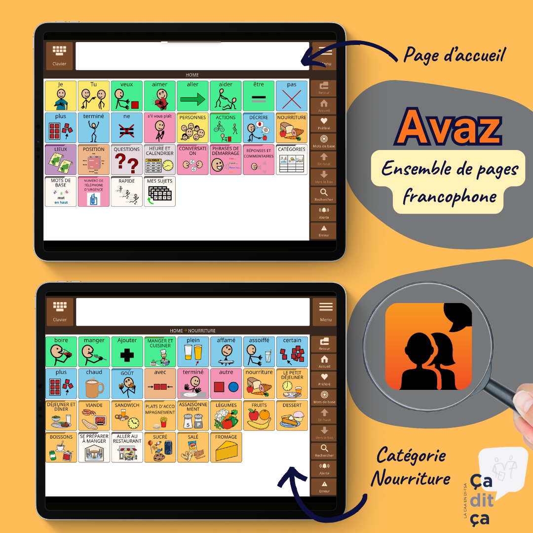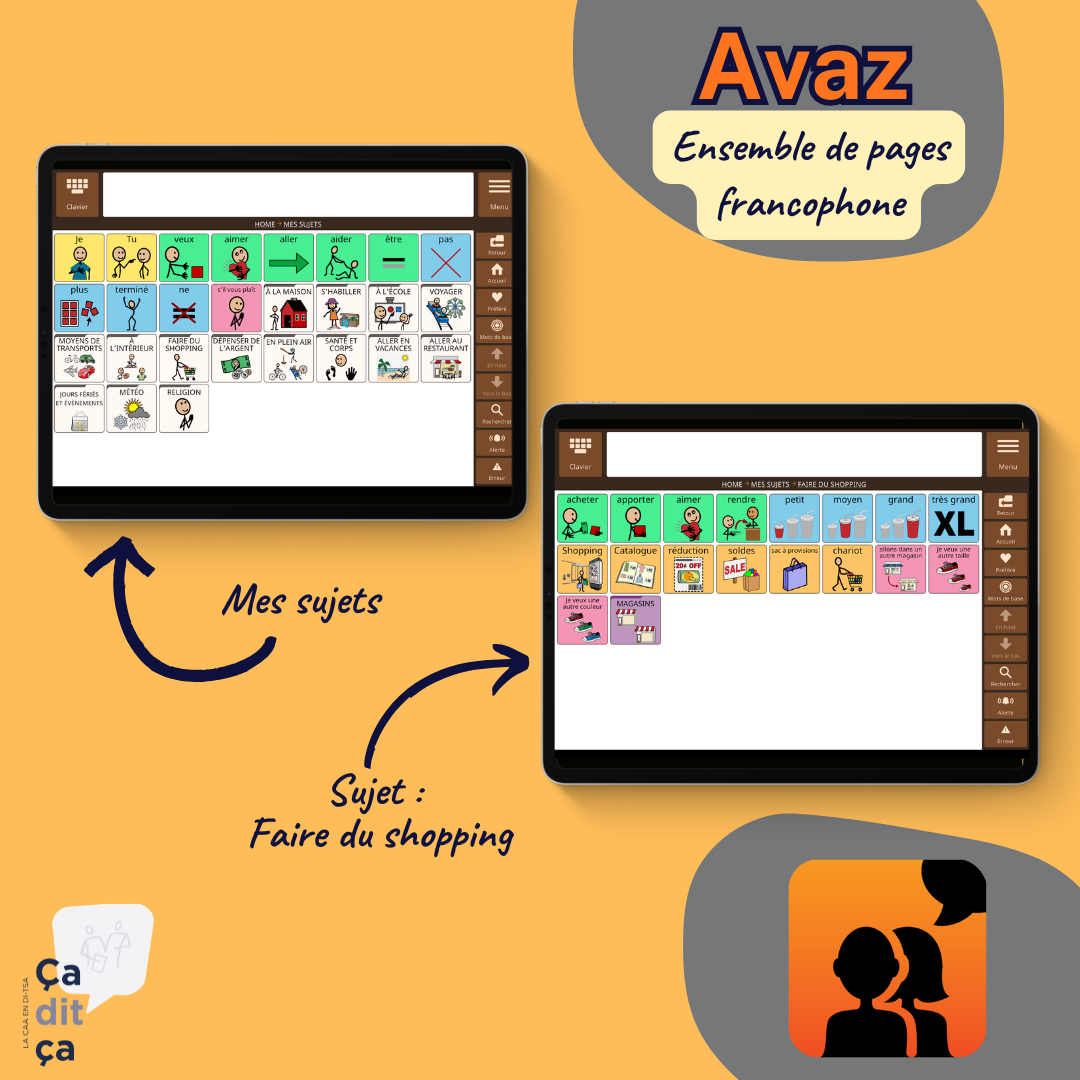 L’ensemble de pages francophone d’Avaz est malheureusement plutôt décevant, si on recherche une programmation robuste. À noter également pour notre auditoire québécois, qu’il s’agit d’un vocabulaire en “français de France”, et que plusieurs ajustements en français québécois sont à prévoir (ainsi que la correction de quelques coquilles de traduction lors du passage de l’anglais au français) !